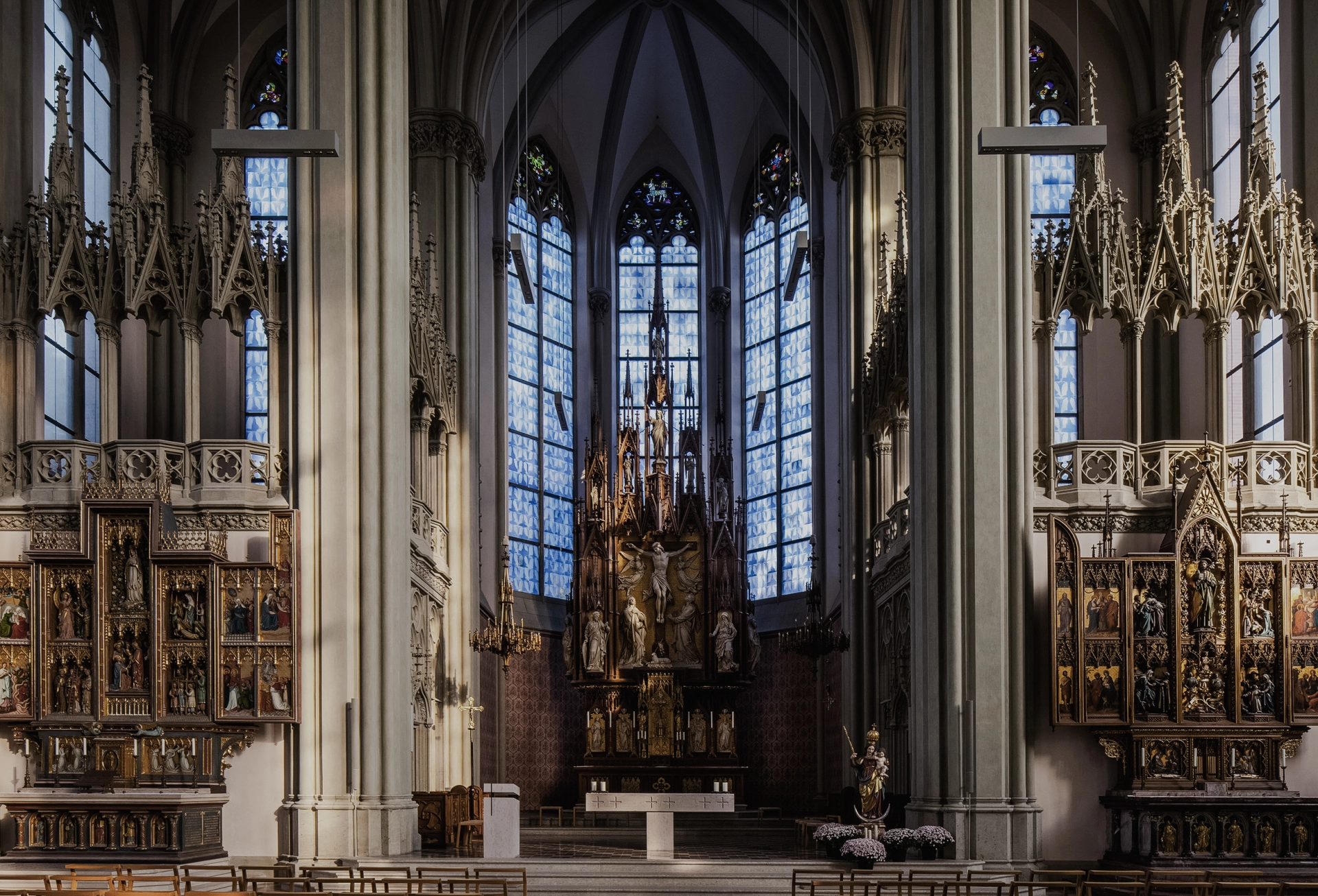 The artist Christoph Brech has redesigned the choir and oratory windows for Munich's Heilig-Kreuz-Kirche. The source material for the artist's windows were well over a thousand chest X-rays donated by Munich citizens. "The decisive factor for my design was the tapestry-like painting on the wall in the lower part of the choir. I wanted to continue this pattern on the windows and take it upwards, but no longer as a motif that always remains the same, but as an individual change,' says Christoph Brech, explaining the starting point of his idea: