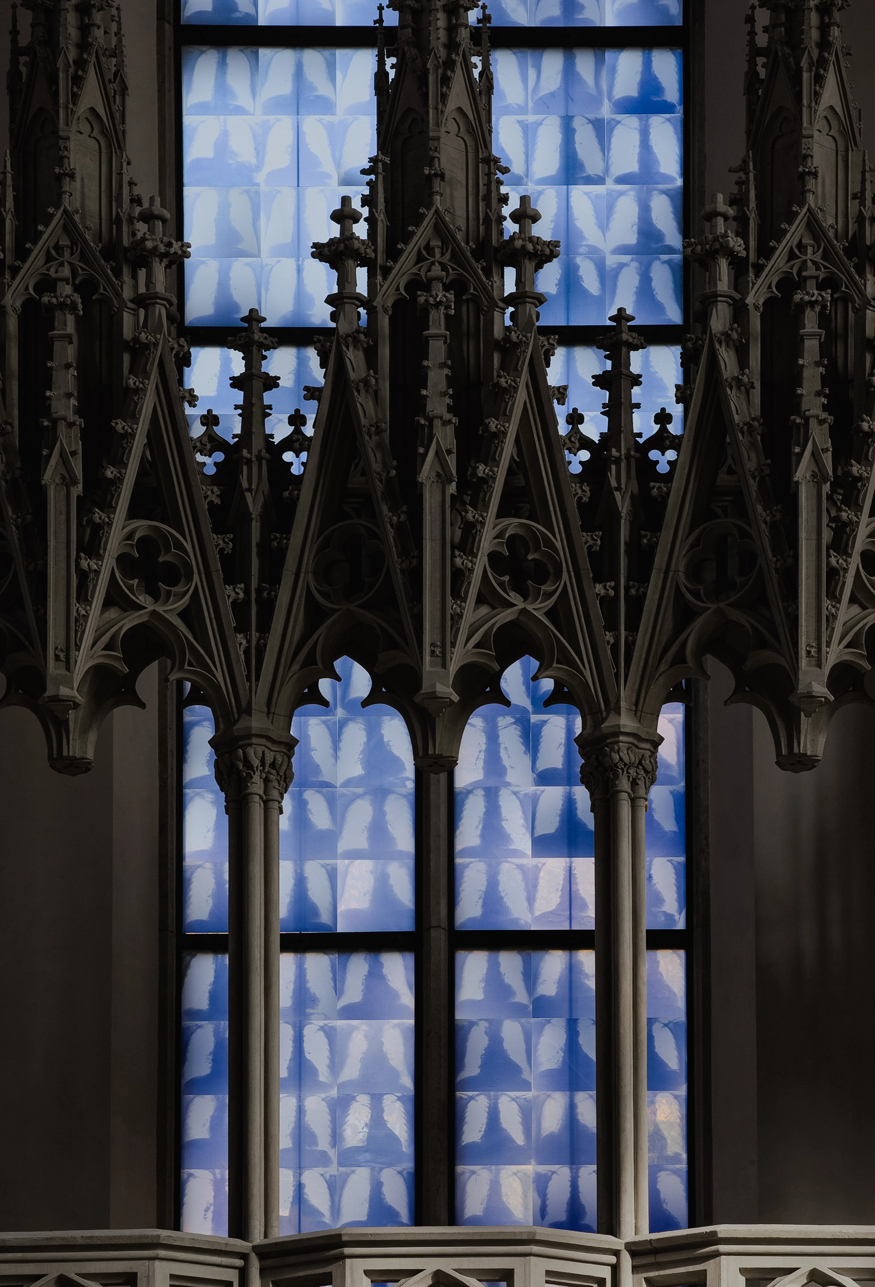 By lining up hundreds of lungs, the differences in human anatomy become tangible. Every chest is different, every person is unique. Every human being is unique before God. And everything external, like skin colour, is no longer recognisable. Many parishioners of Holy Cross Parish donated their X-rays for the new stained glass windows, which are now installed in the church in their name. The donors are thus immortalised in their church windows, just as in the old tradition. The only new aspect is that anyone can be a donor and does not have to be wealthy - in other words, a democratic donor window.