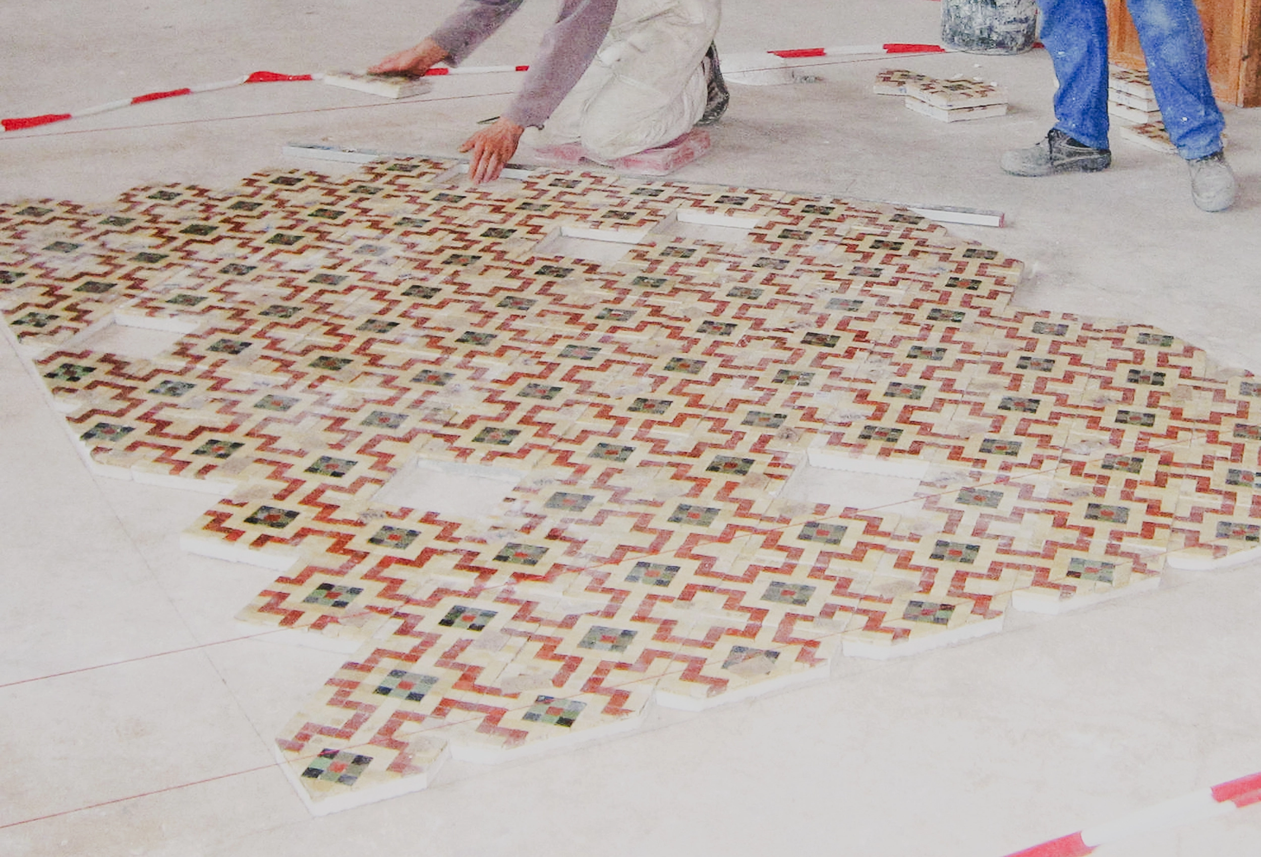 After extensive destruction during the Second World War and initial security measures, reconstruction began in 2003 according to plans by renowned architect David Chipperfield. The van Treeck workshops were entrusted with the restoration and reconstruction of the stoneware mosaic surfaces.