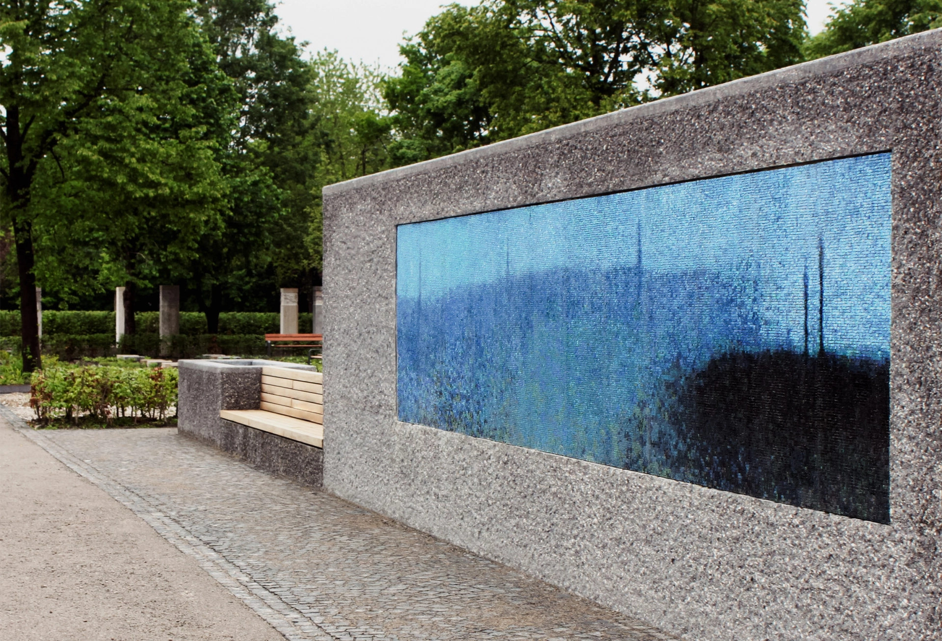 Christoph Brech releases pixels into the analogue world: two wall mosaics measuring 1.37 x 7.22 metres have been created for the new urn complex at Munich's Westfriedhof cemetery according to the specifications of Munich-based photo and video artist Christoph Brech.