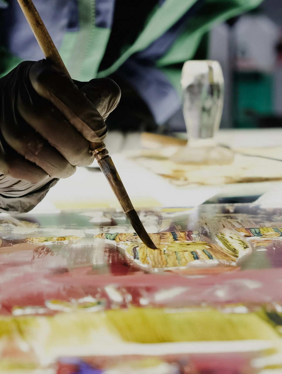Mit vielfältigen Möglichkeiten der künstlerischen und technischen Beratung, Planung und Umsetzung stehen wir an der Seite, wenn Kunstwerke entstehen oder erhalten werden. Die Bandbreite unserer Arbeit reicht von der Glasveredelung und Mosaikherstellung über die Konservierung und Rekonstruktion angewandter Kunst bis hin zur Entwicklung und Herstellung von Designprodukten aus Glas. Grafische und planerische Gestaltung sowie Lieferung und Montage weltweit runden das Angebot ab.