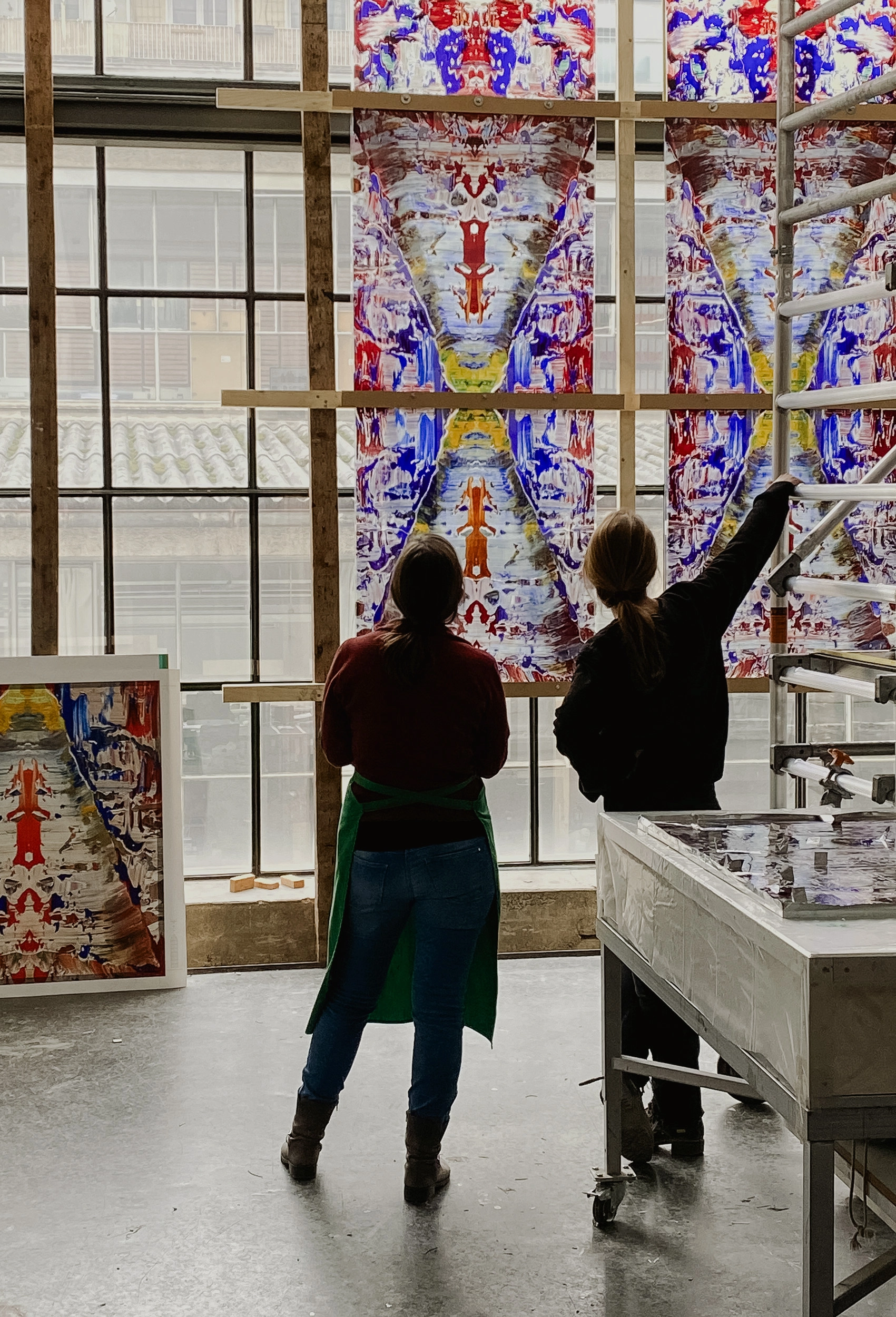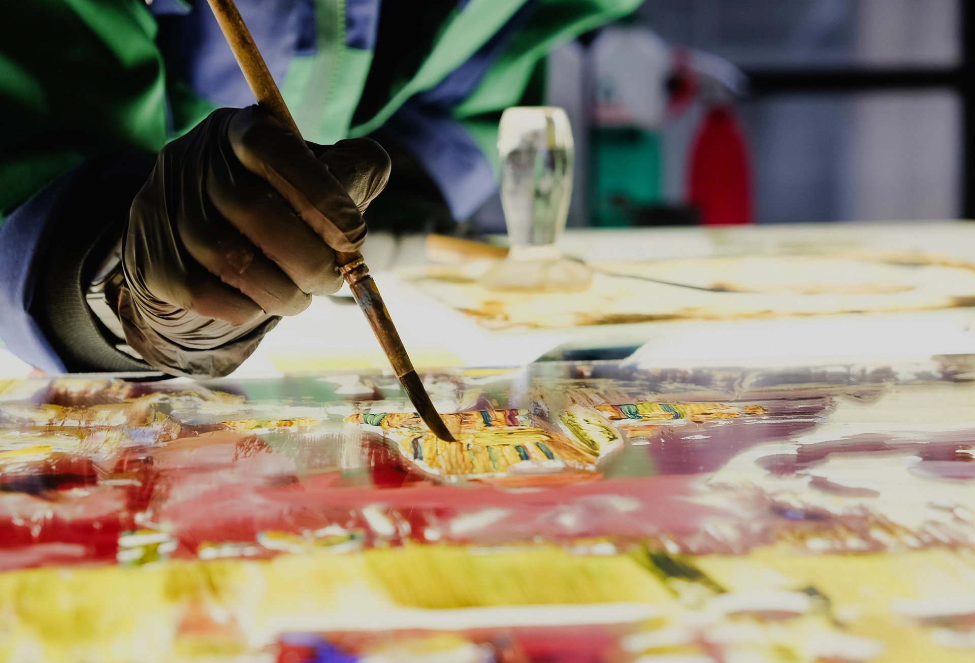 Unterstützt von intensiver digitaler Vorarbeit entstanden die Richter-Fenster als Sandwich-Verglasungen unter Verwendung verschiedenster Glasmalerei-Techniken wie dem Ätzen von mundgeblasenen Überfanggläsern, freien Glasmalereien auf Floatglas, Siebdrucken und Sandstrahlarbeiten.