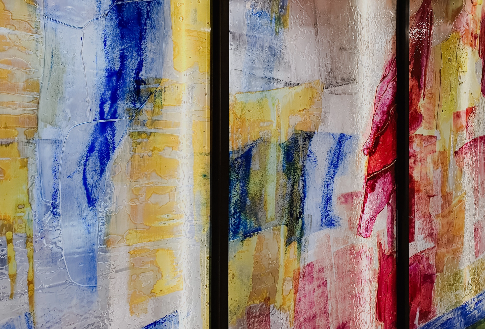 Farbmalereien für Pfaffenhofener Seniorinnen und Senioren: Der Künstler Nikolaus Hipp hat für den neu gestalteten Andachtsraum der Senioreneinrichtung St. Franziskus Malereien für die Glasfront und die Eingangstür entworfen. Die glasmalerische Umsetzung erfolgte in unseren Glaswerkstätten.