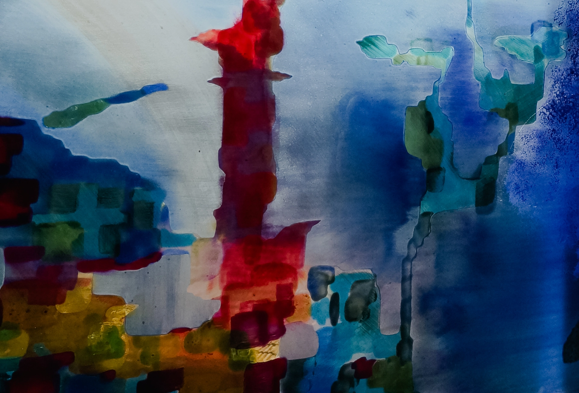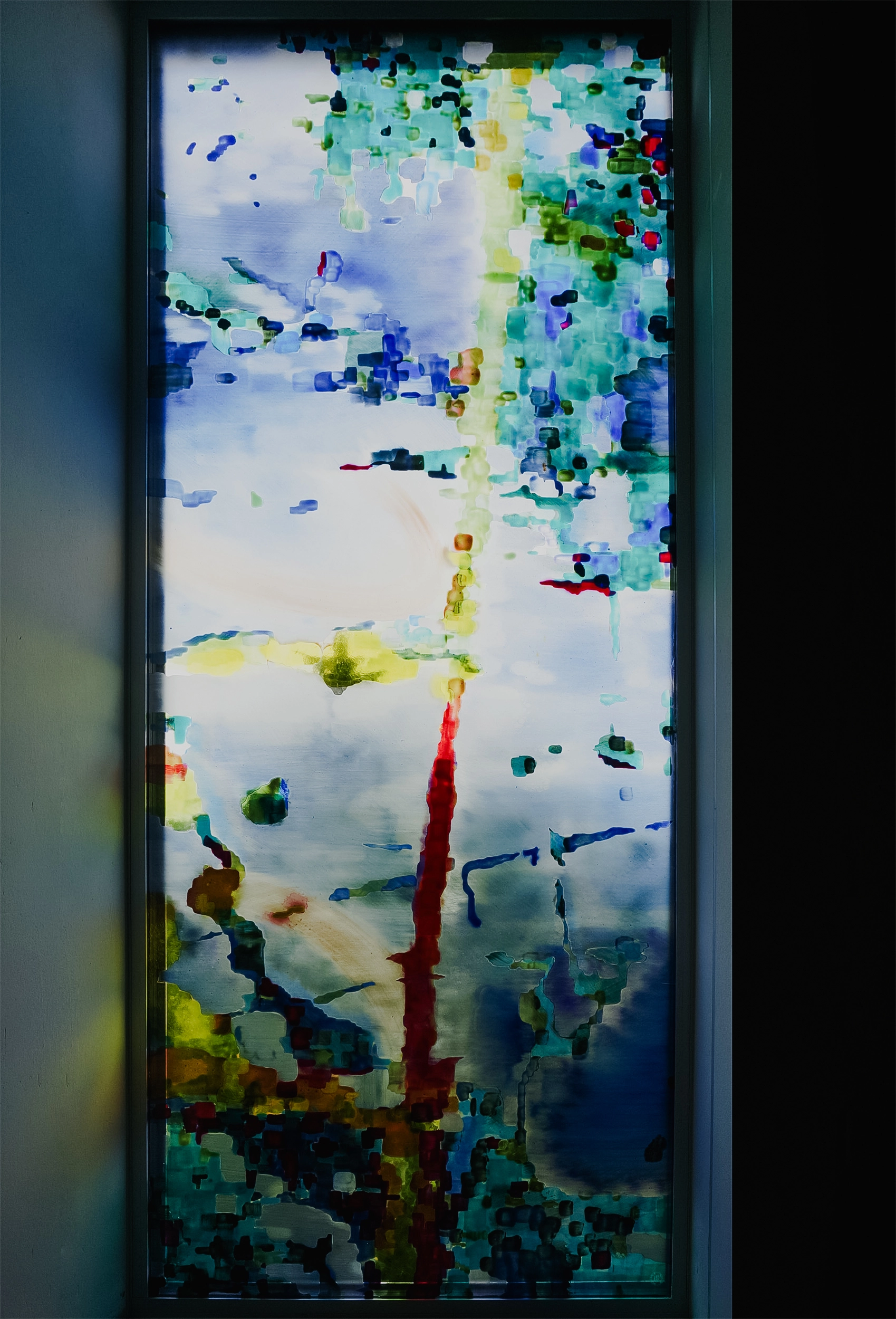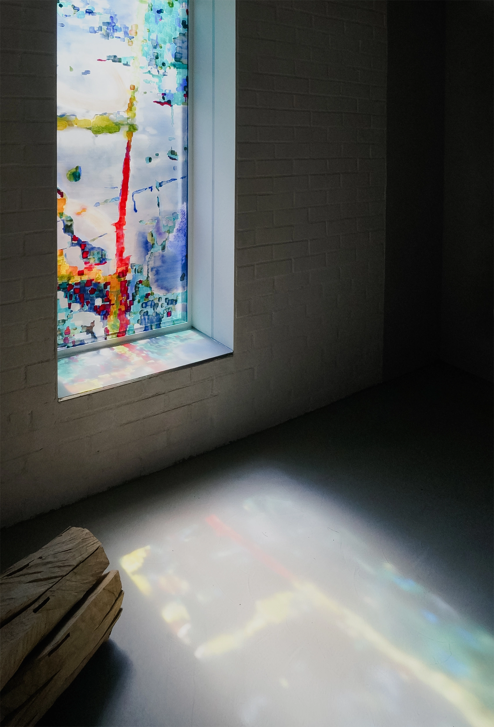 Der niederbayerische Bildhauer Nikodemus Löffl konzipert seit 1992 Kunst im öffentlichen Raum und im sakralen Bereich. Für den Andachtsraum des St. Ursula Hospiz' Nieralteich wählte er erstmals die Glasmalerei als eines der Gestaltungselemente. Die Floatglasmalerei enstand nach Entwurf und Direktiven des Künstlers in den Werkstätten van Treeck.