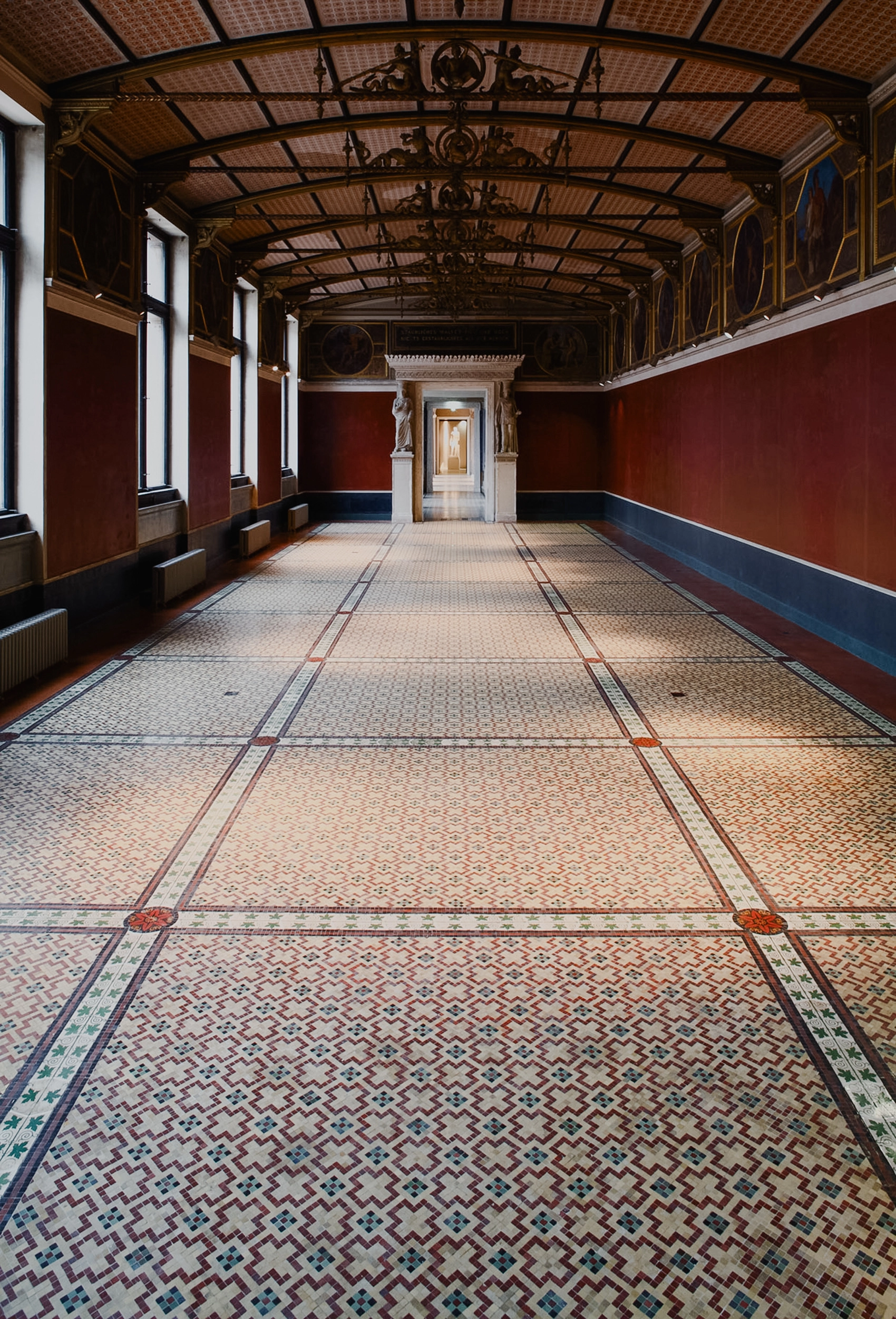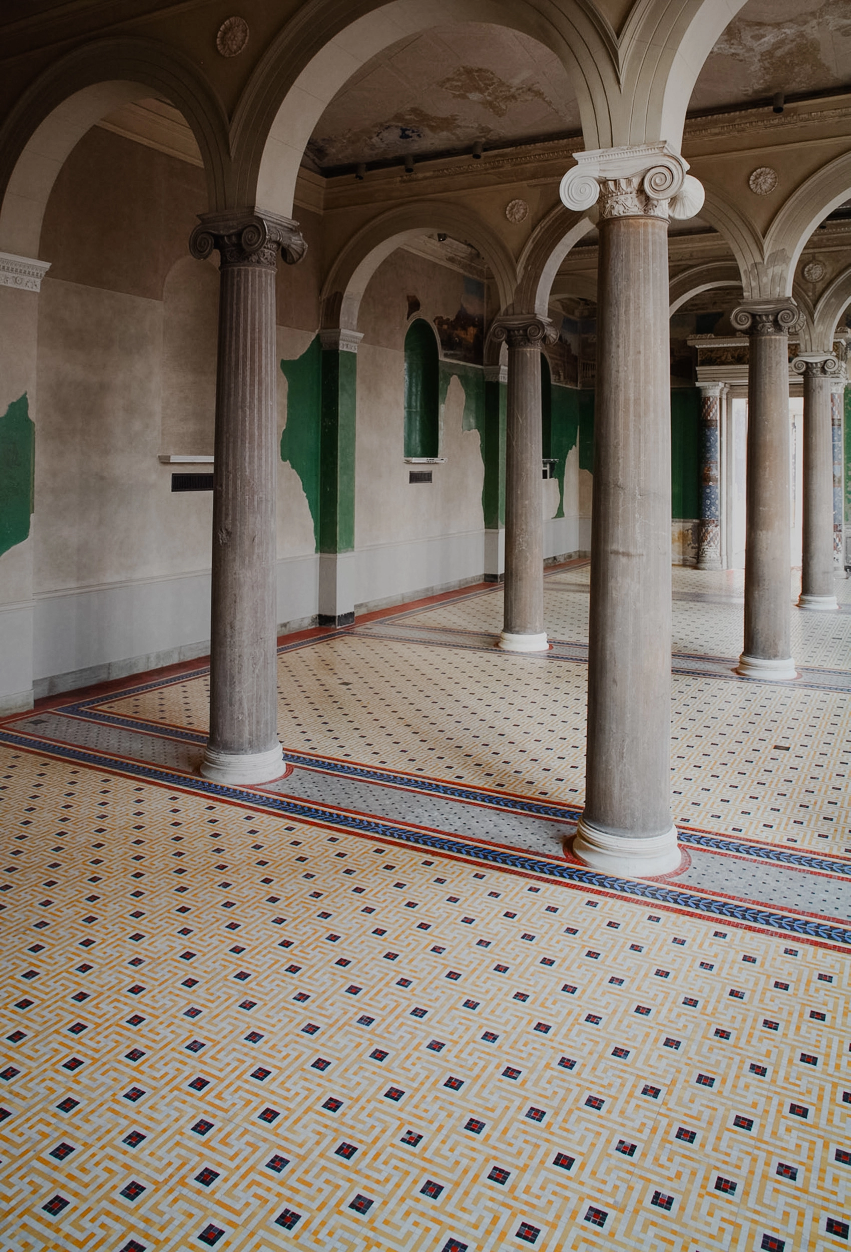 Nach der weitgehenden Zerstörung im Zweiten Weltkrieg und ersten Sicherungsmaßnahmen konnte 2003 mit dem Wiederaufbau nach Plänen des renommierten Architekten David Chipperfield begonnen werden. Die Werkstätten van Treeck waren dabei mit der Restaurierung und Rekonstruktionen der Steinzeugmosaik-Flächen beauftragt.