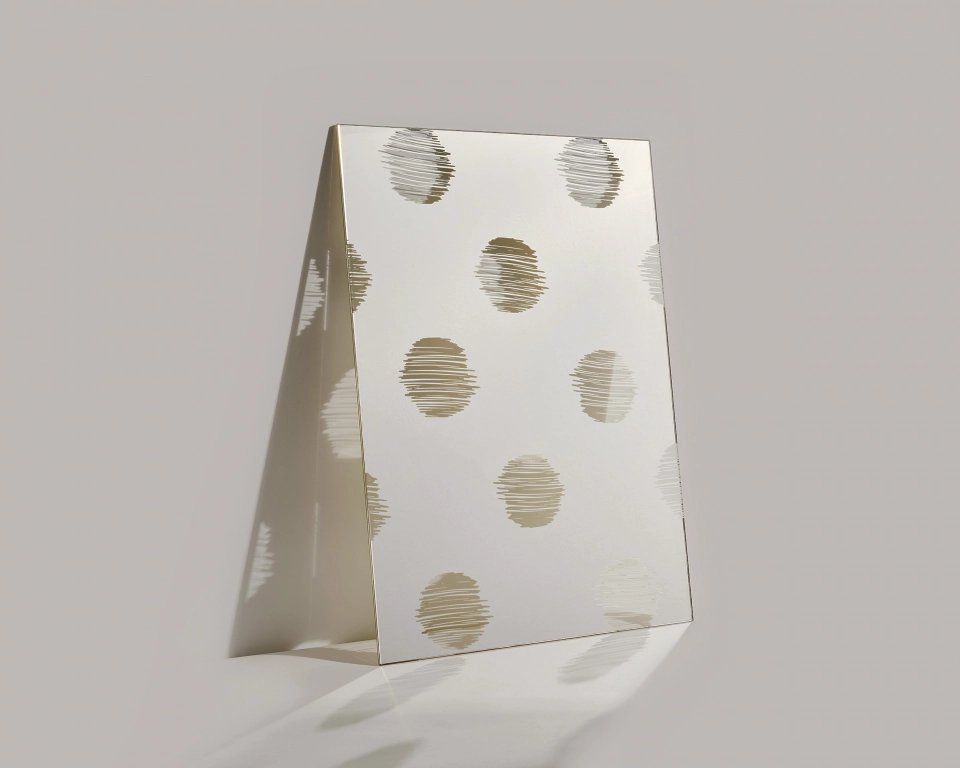 Die Handzeichnung einer Draperie als Basis und strukturiertes Riffelglas schaffen ein zeitgenössisches Raumgefühl. Design von david/nicolas.