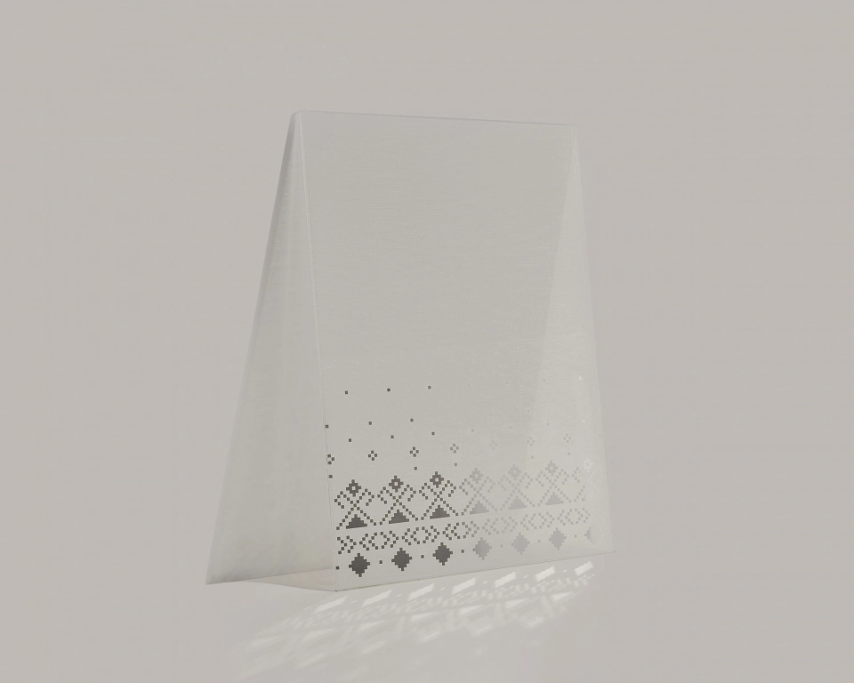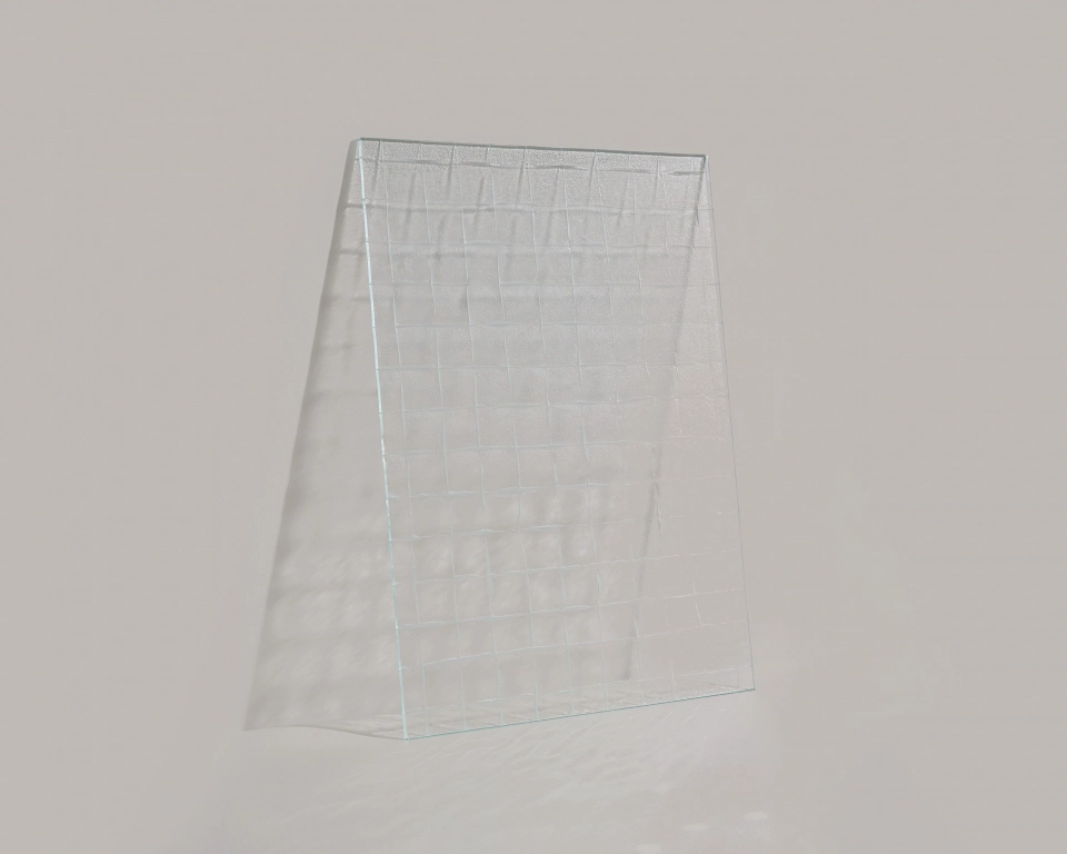 Eine Hommage an die filigranen Muster von Drahtglas und gewebtem Stoff. Die feinen Strukturen auf der Glasoberfläche entstehen durch das Fusing-Verfahren. Design von Office Heinzelmann Ayadi (OHA).