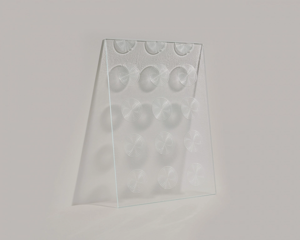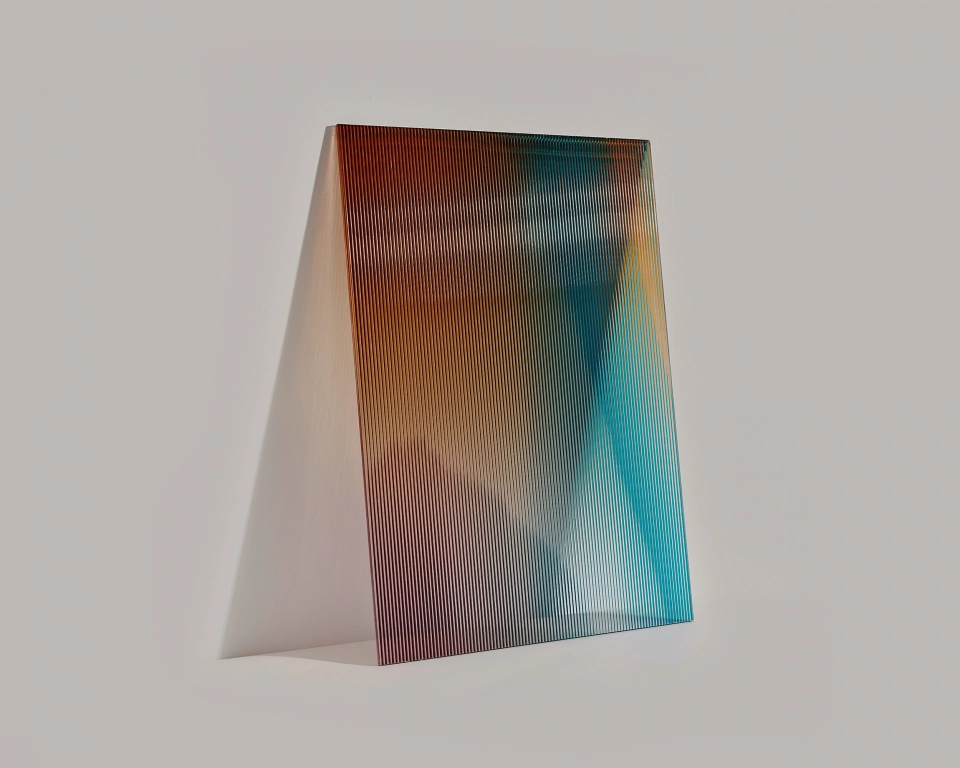 Der optische Effekt der Lichtbrechung in dreidimensionalem Glas wird genutzt, um wechselnde Farbverläufe zu erzeugen.