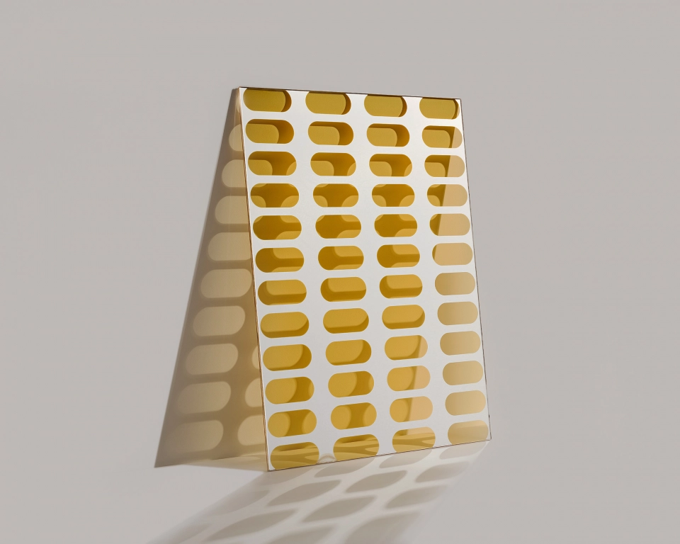 Inspiriert von Rechteckverglasungen in Sakralbauten wirft das Glas geometrische Lichtschatten in den Raum, zarte Farbverläufe fließen ineinander. Design von Milena Kling.