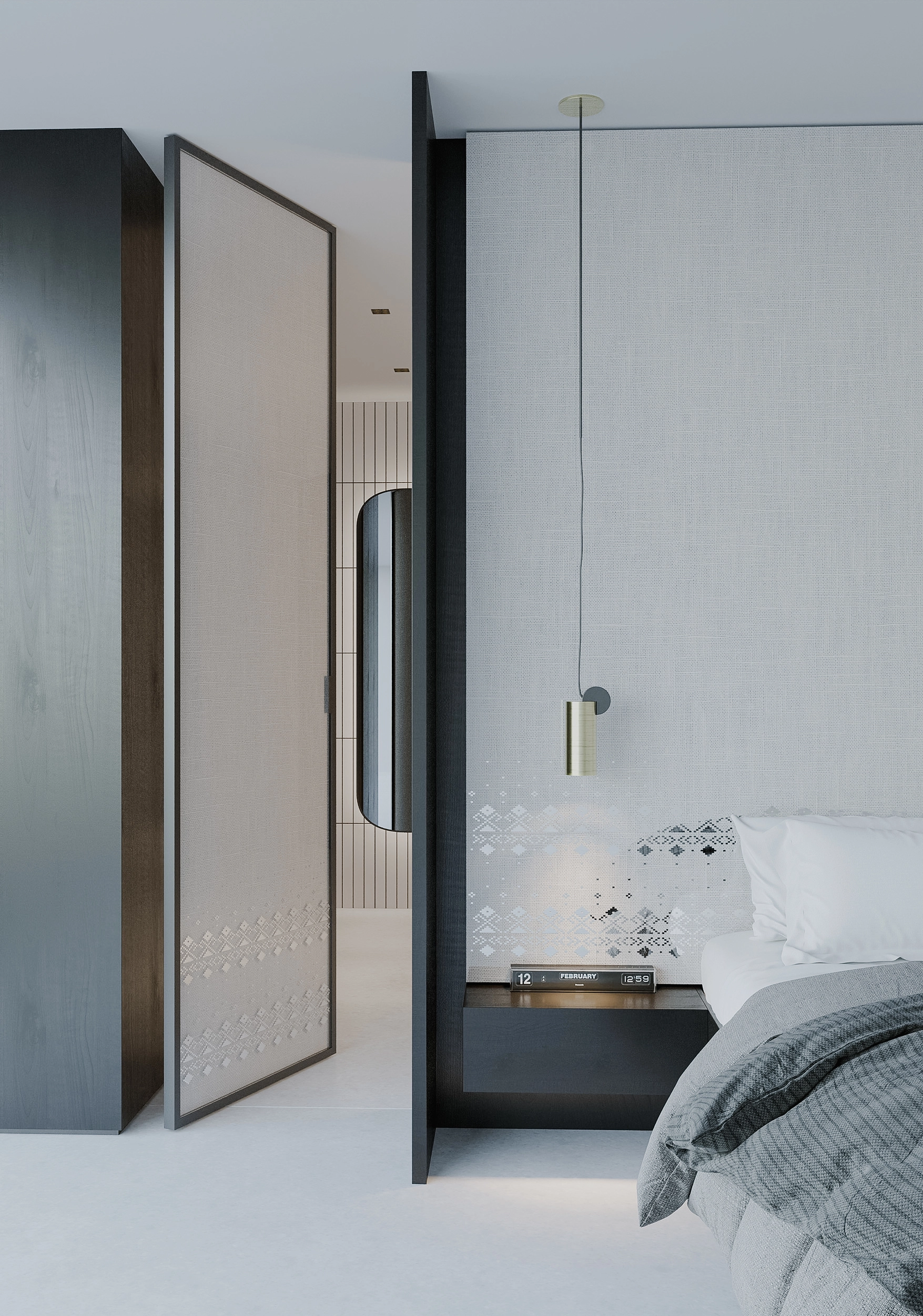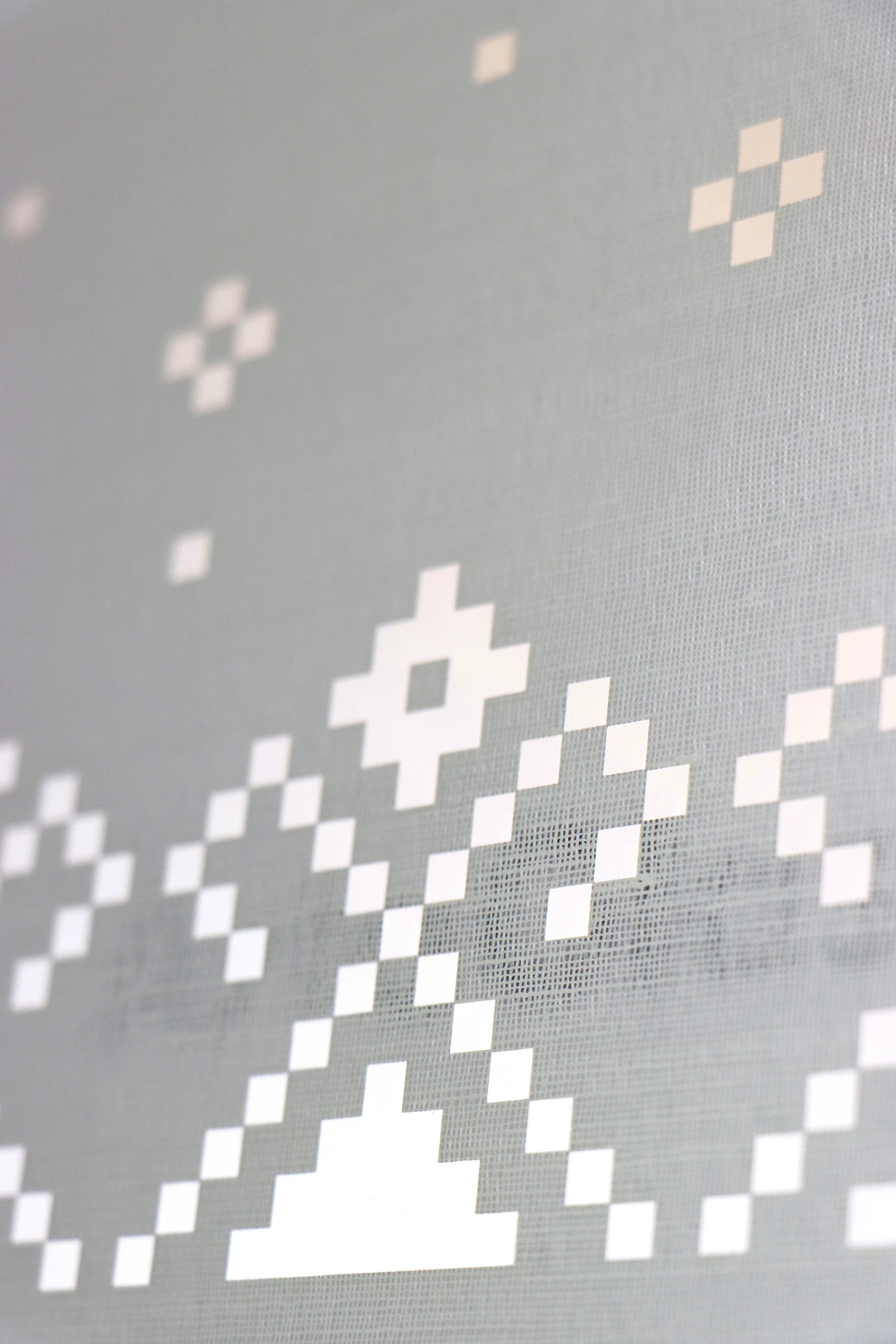 Inspiriert von Szenarien, die sich in der Vergangenheit in den Fenstern abspielten, sind für das Design feine Stoffe in das Glas eingearbeitet. Die Stickmuster werden zu anmutigen Spiegeln unserer Zeit.