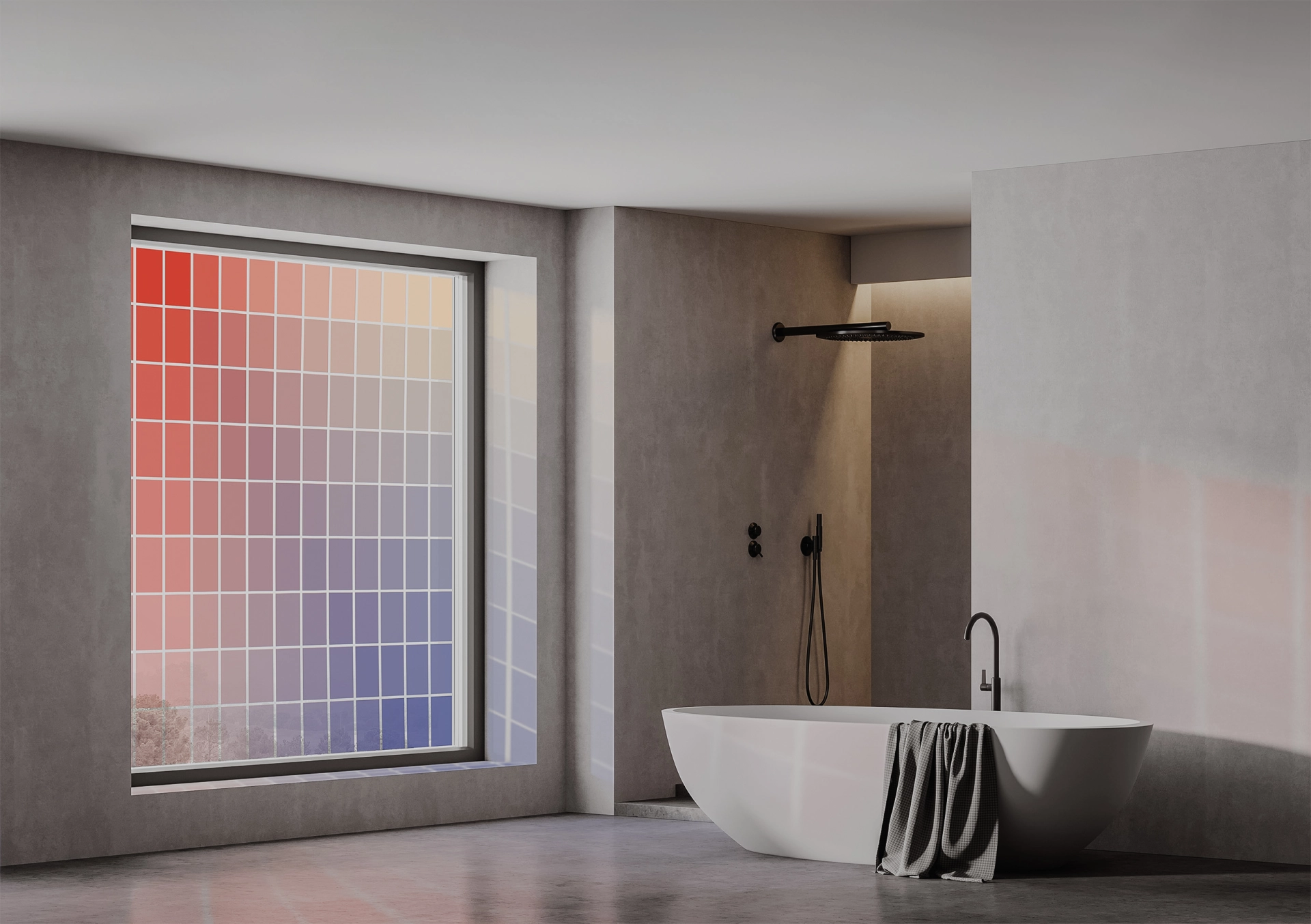Technik: Farbdruck, satiniertes Glas, Laminieren