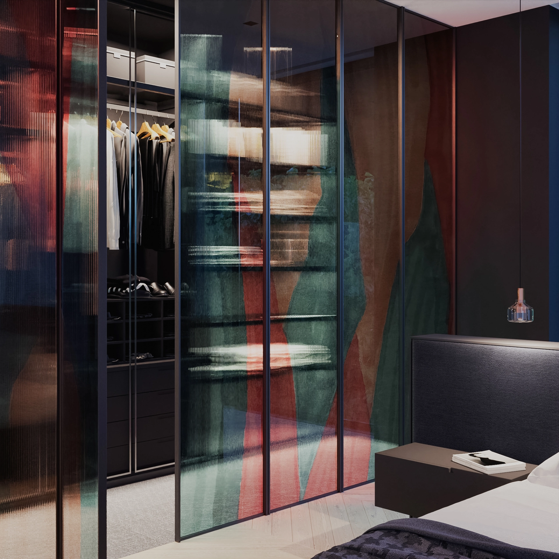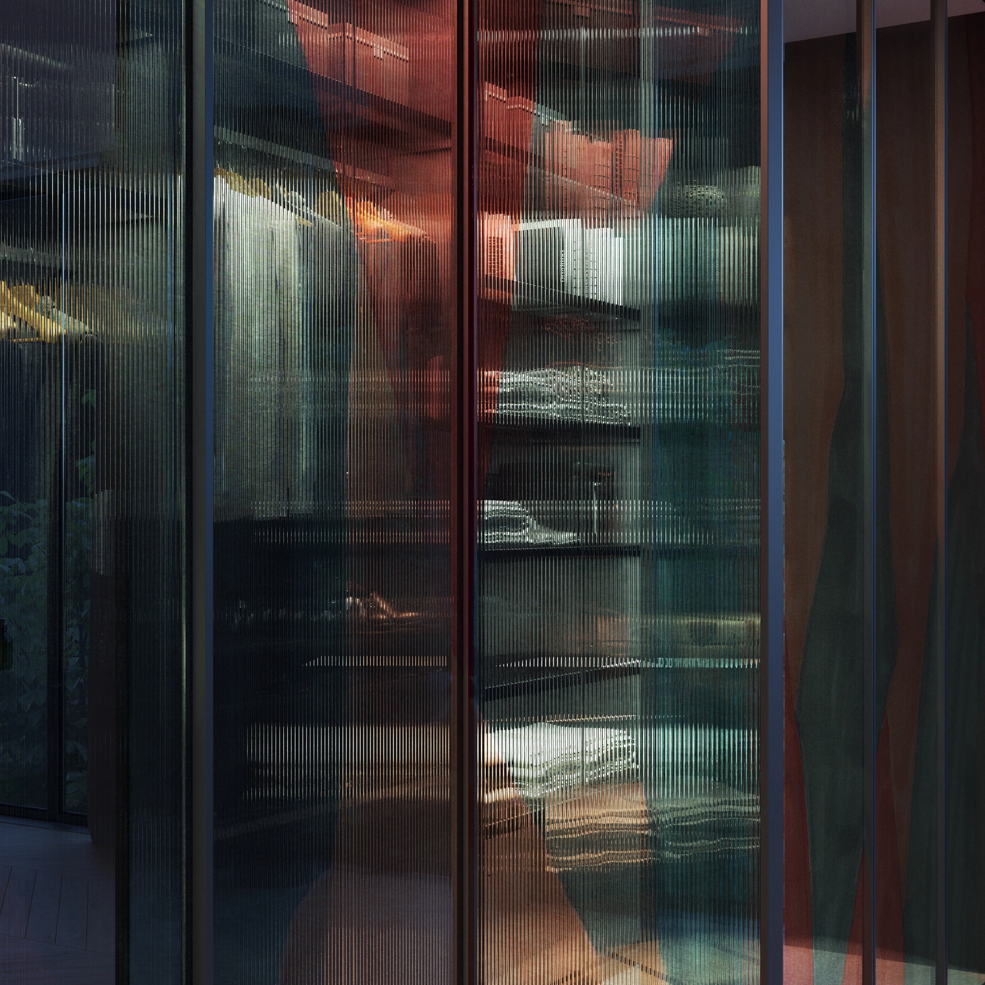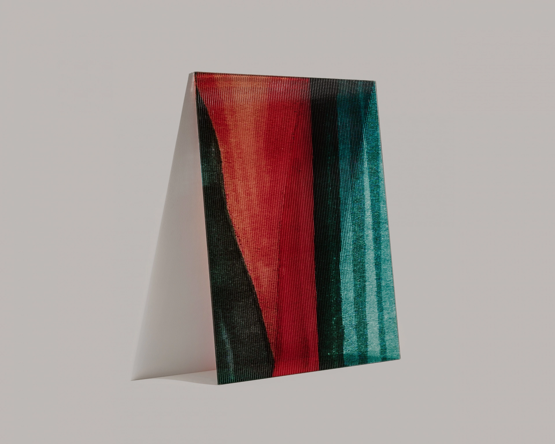 Technik: Geriffeltes Glas, Farbdruck, Laminieren