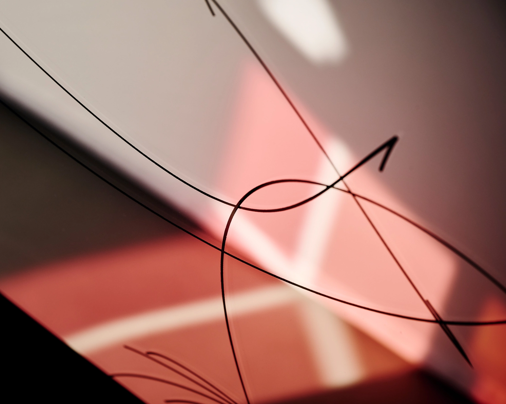 Technik: Verspiegeln, satiniertes Glas, Laminieren